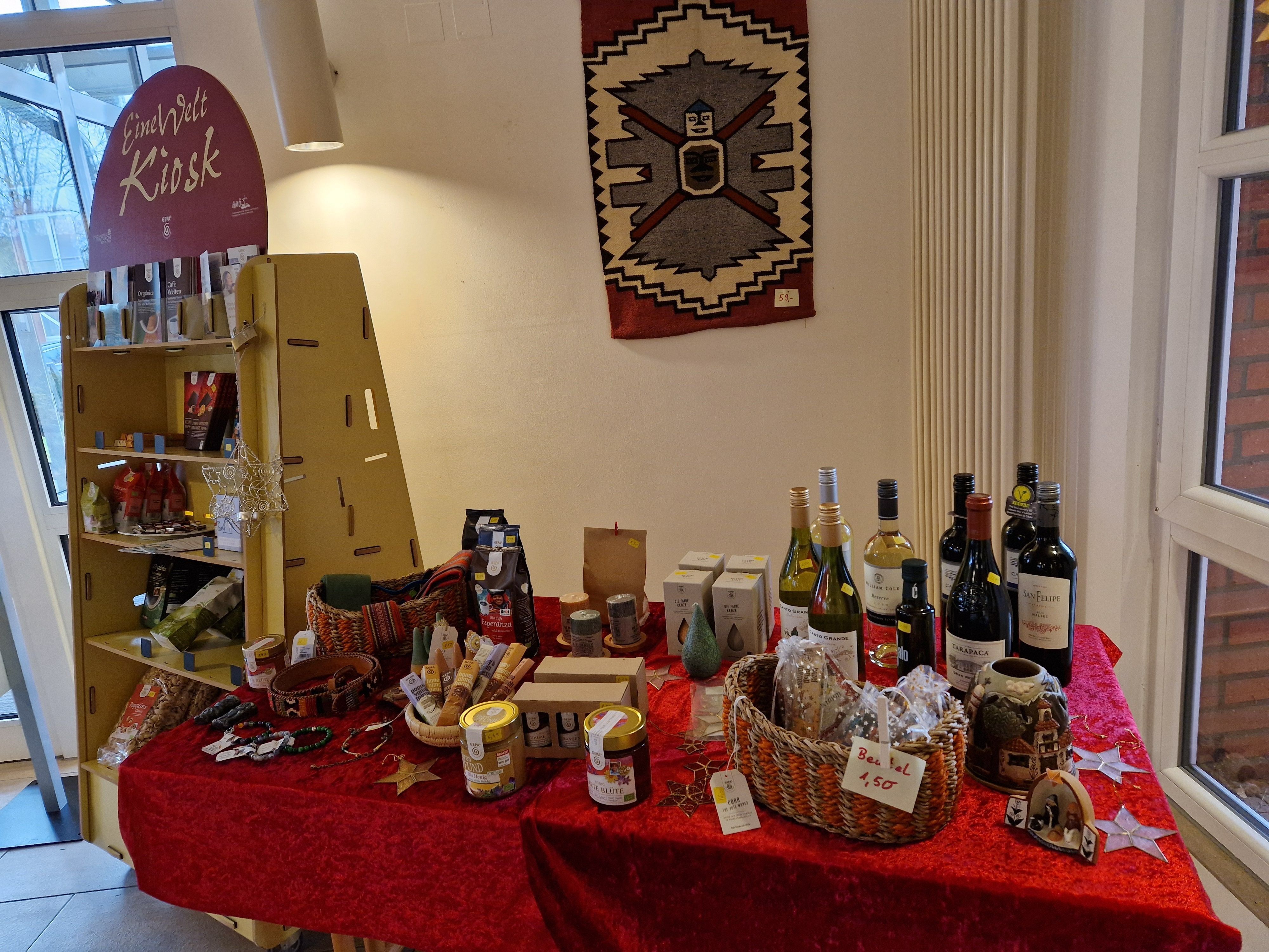 Kaufen Sie nach dem Gottesdienst am Weltladen-Stand Waren aus fairem Handel, z.B. Kaffee, Tee, Honig, Schokolade oder Geschenkartikel. Der Weltladen-Stand öffnet mit Ende des Gottesdienstes, die Zeiten können leicht variieren.