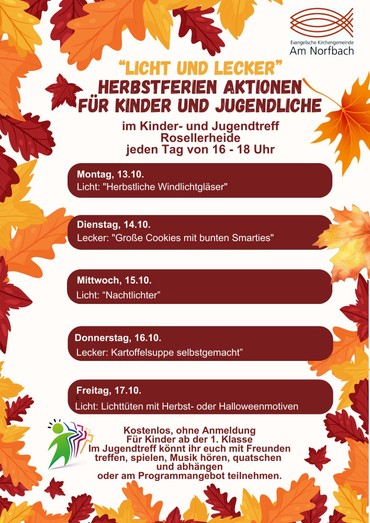 Vom 13. bis 17. 10. ist der Kinder- und Jugendtreff in Rosellerheide täglich von 16:00 bis 18:00 Uhr für alle Kinder geöffnet.